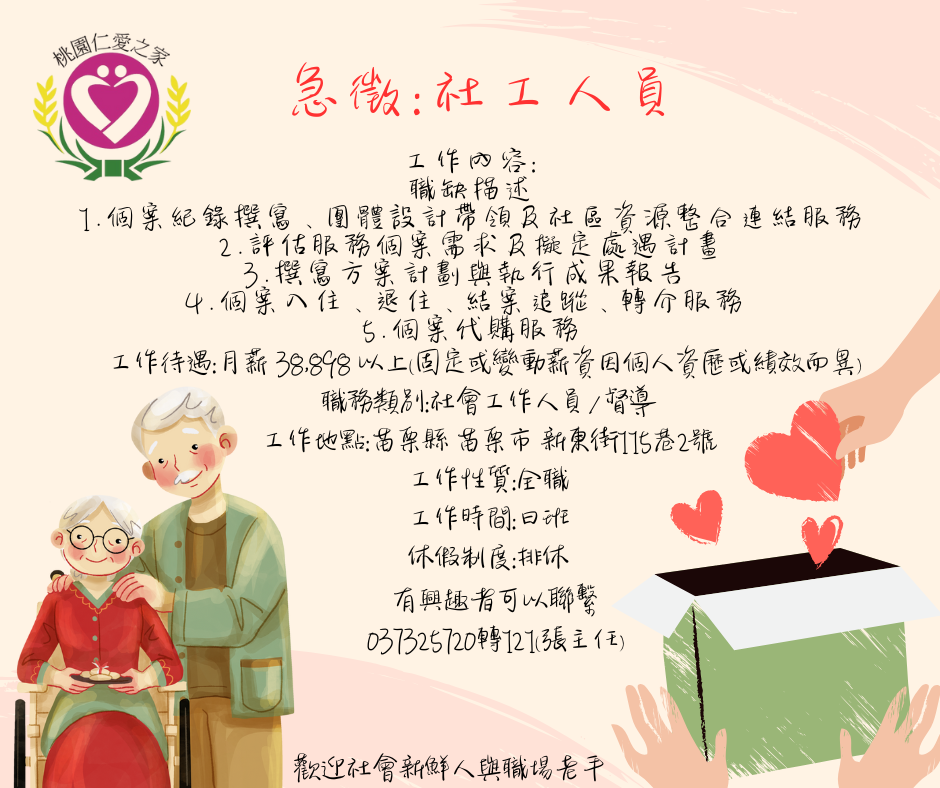 我們誠摯邀請 社工人員 與 護理人員 加入我們的溫馨團隊